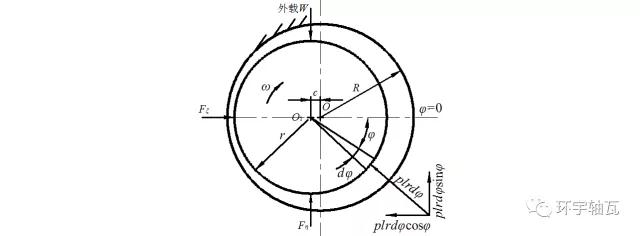 將微面積上力沿偏心方向及垂直方向兩個分量依次積分,即得油膜壓力的合力的兩個分量如圖1所示。