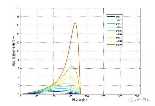 據(jù)此可知,偏心率越大,油膜承載峰值越大,承載能力越強(qiáng),符合液體動壓軸承經(jīng)典理論。