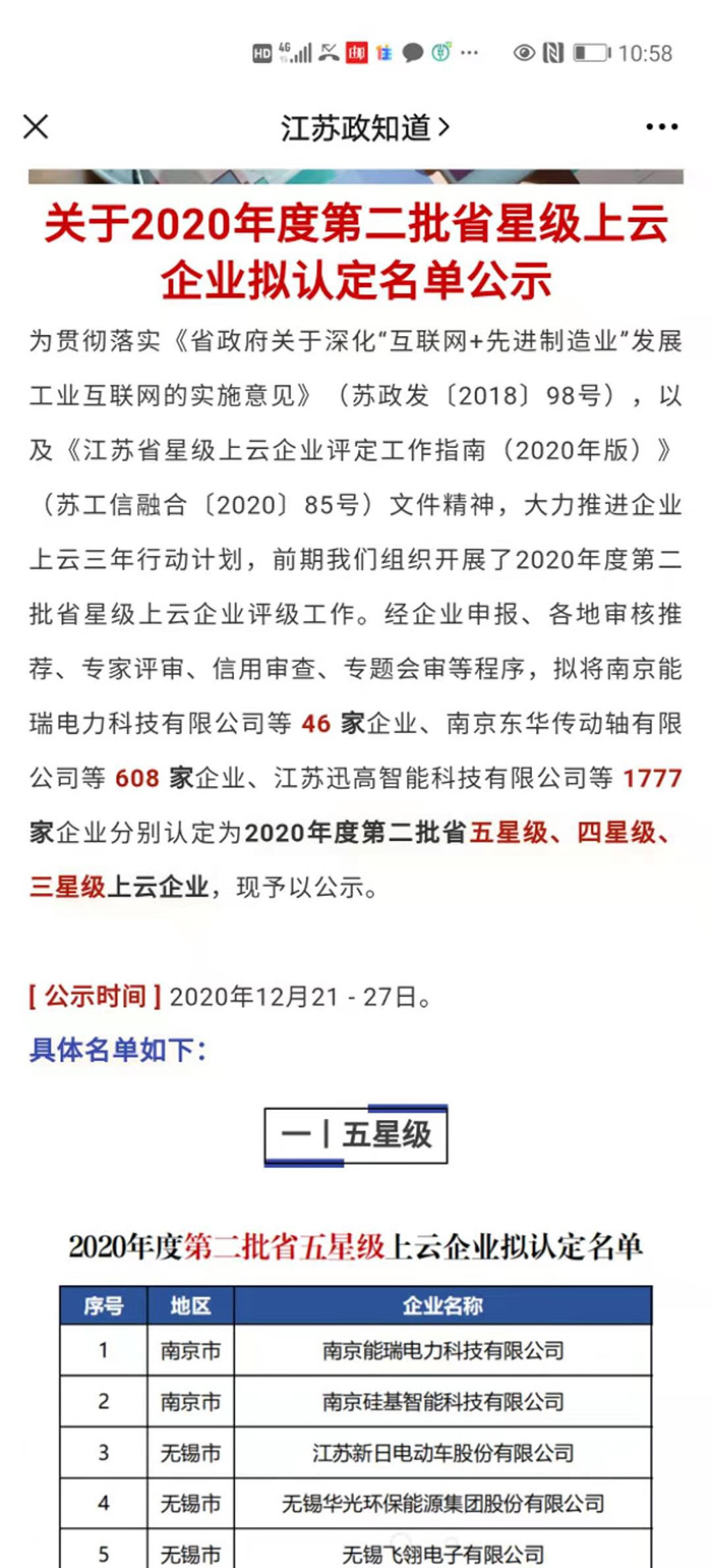 11月,環(huán)宇軸瓦順利通過江蘇省第二批四星級上云企業(yè)。