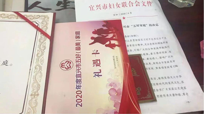 6月,沈俊同志家庭被宜興市婦聯(lián)評為“宜興市五好(最美)家庭”。