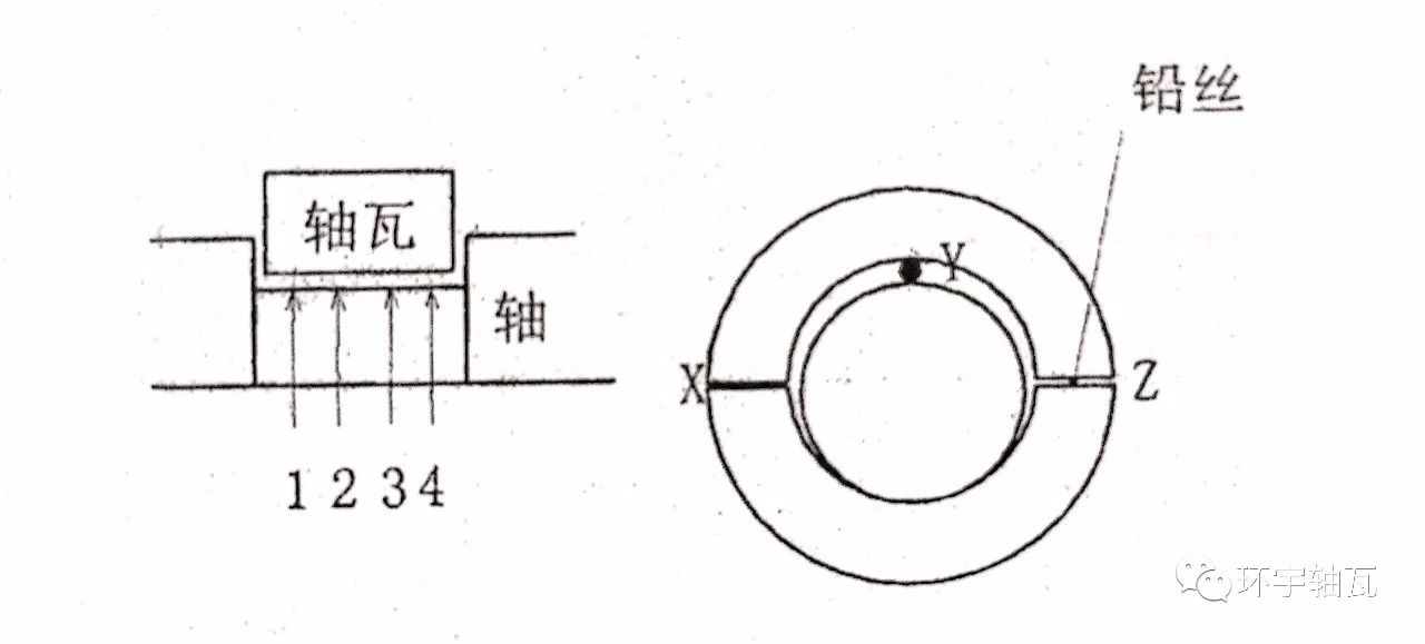 5.1.1 在轉(zhuǎn)軸表面放置鉛絲,并在軸瓦上下配合面各放置鉛絲,見圖1。